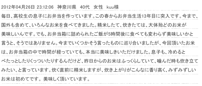 - コシヒカリお買い上げのお客様の声